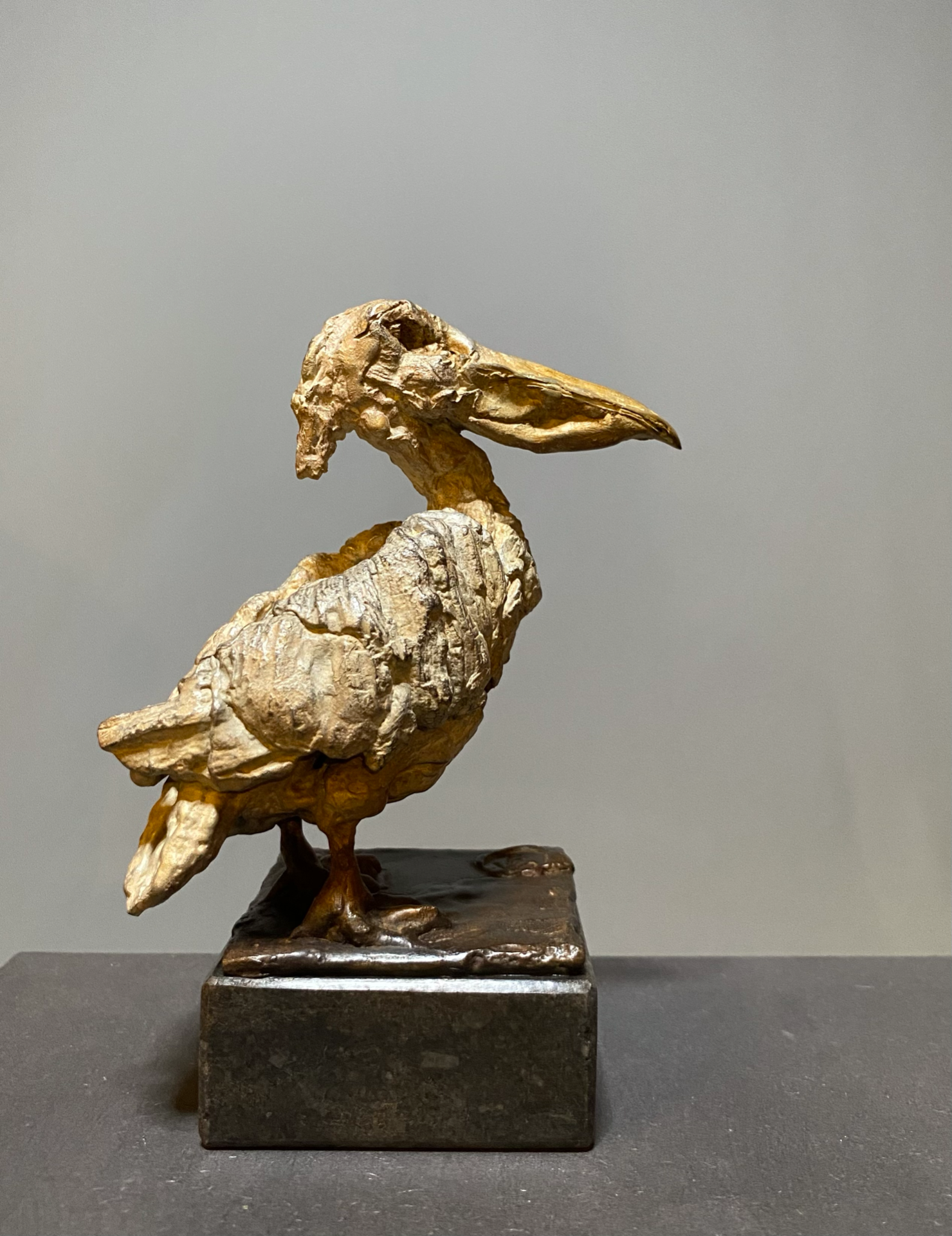Pelican , 16 cm H , bronze with a silver and white patina , edition of 8+4